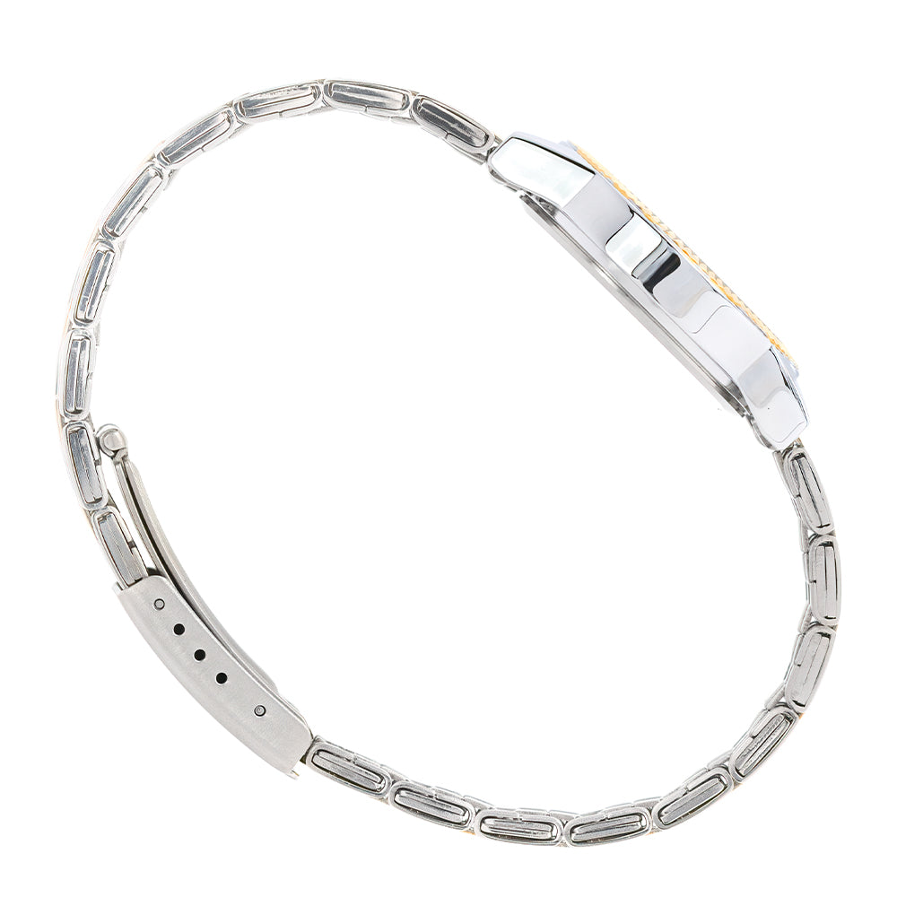 This two-tone Elara 31mm blends silver and gold accents for a versatile, elevated look. The silver dial keeps the design crisp and refined, while the mixed-metal bracelet adds warmth and visual interest. A timeless piece that transitions seamlessly across occasions.