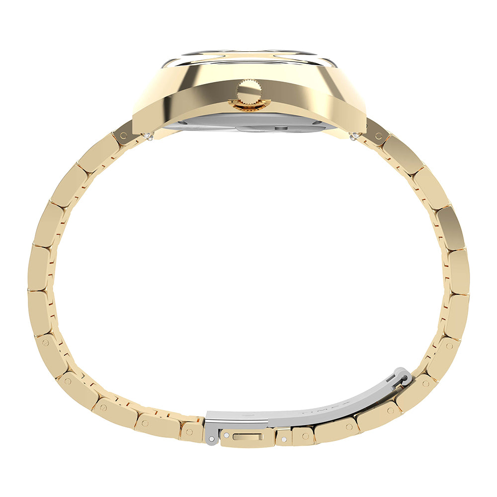 This 1972 blast from the past is an archival quartz watch that delivers ‘70s boldness from every angle, boasting a substantial 39mm recycled stainless-steel tonneau case with all-around polished finishing. You’ll find our usual attention to detail with dimensional floating hour markers that hover above the striking tiger’s eye dial, plus a polished handset to match, a trapezoidal date window, and a period-correct domed acrylic crystal on top. Completing the look, a bold geometric bracelet thoughtfully crafted from polished recycled stainless steel adds a modern edge to this nostalgic, reissued design.