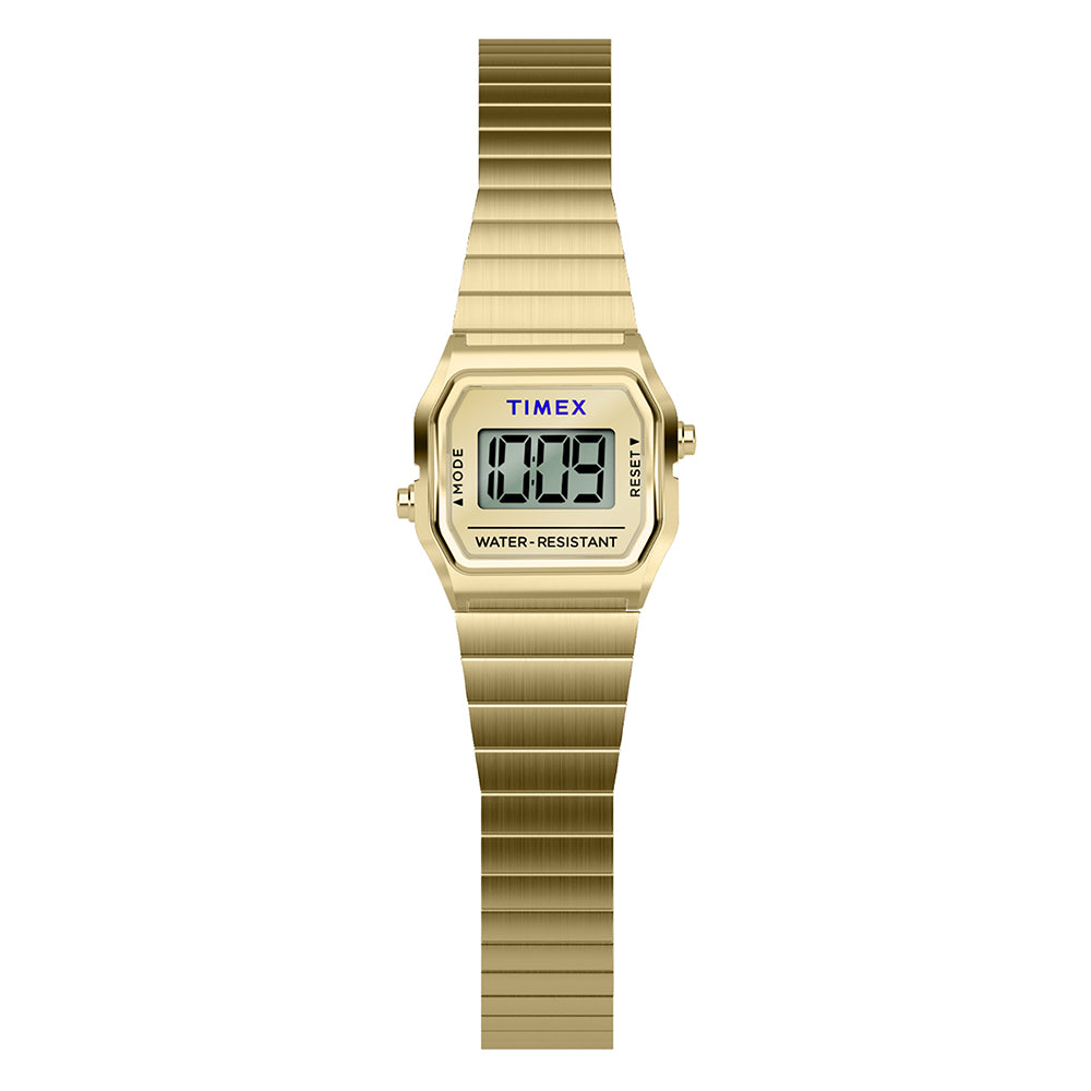 The Teeny Tiny Timex endorsed by Dimepiece is a small-scale watch with a serious presence. Sized like jewelry but built with function, it features a clean digital display, a sleek 20mm recycled stainless-steel case, and a stainless-steel bracelet that can be resized in seconds thanks to Perfect Fit links. Above the display, bold TIMEX branding in Dimepiece’s signature purple adds a hit of personality, while a classic month and date display keeps things effortlessly functional.